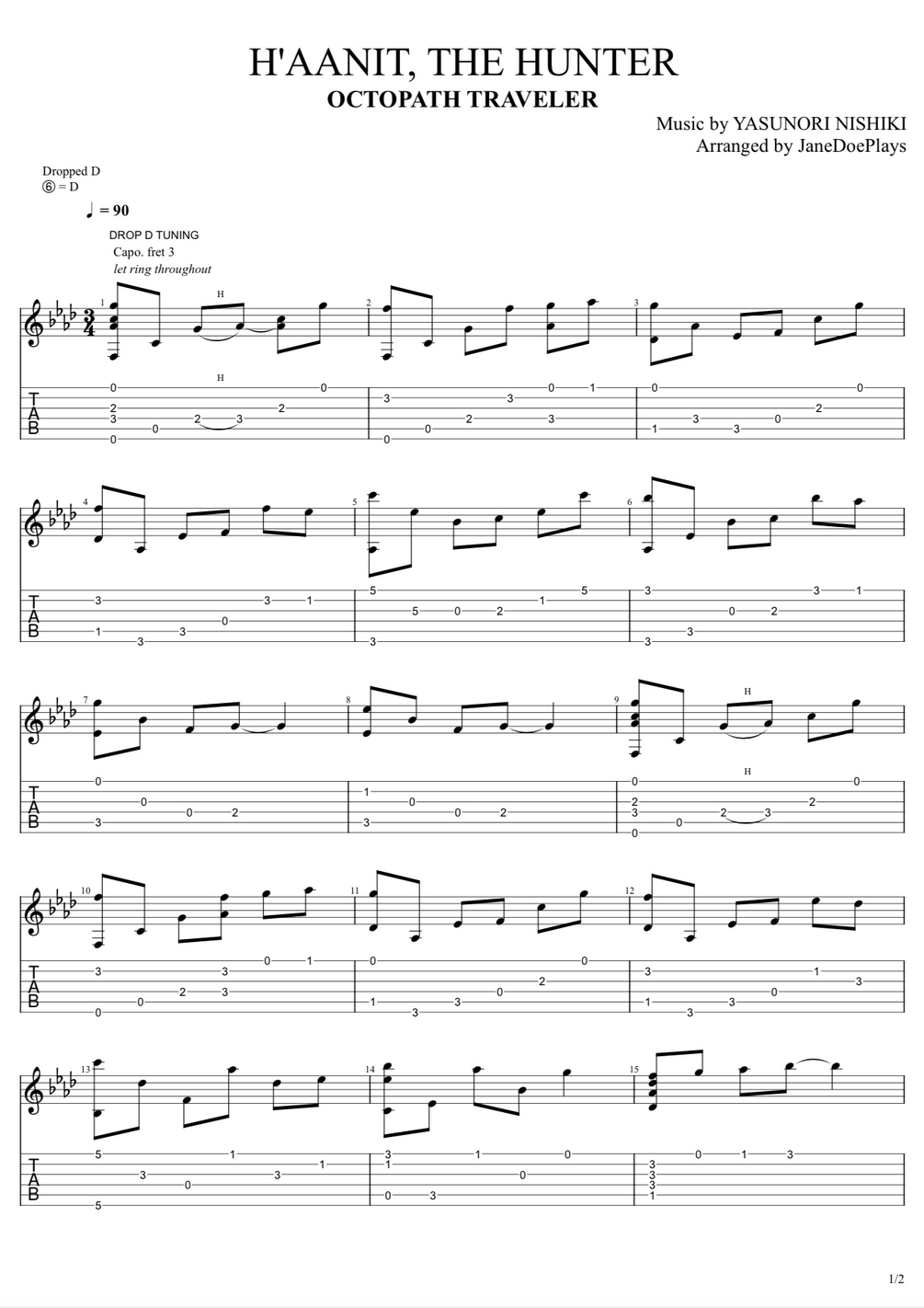 H'aanit, the hunter (Octopath Traveler) Fingerstyle guitar TABS